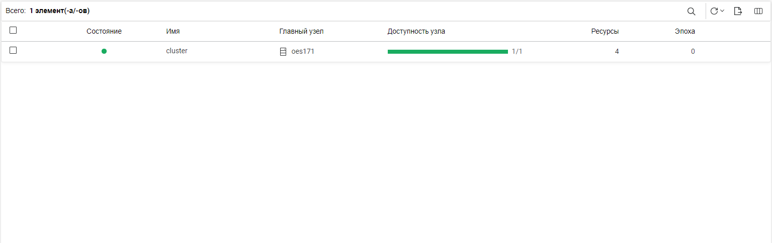 На правой стороне панели инструментов отображается графическое представление узлов кластера.