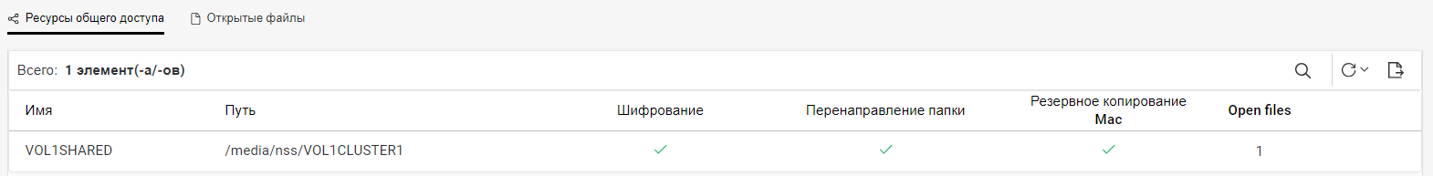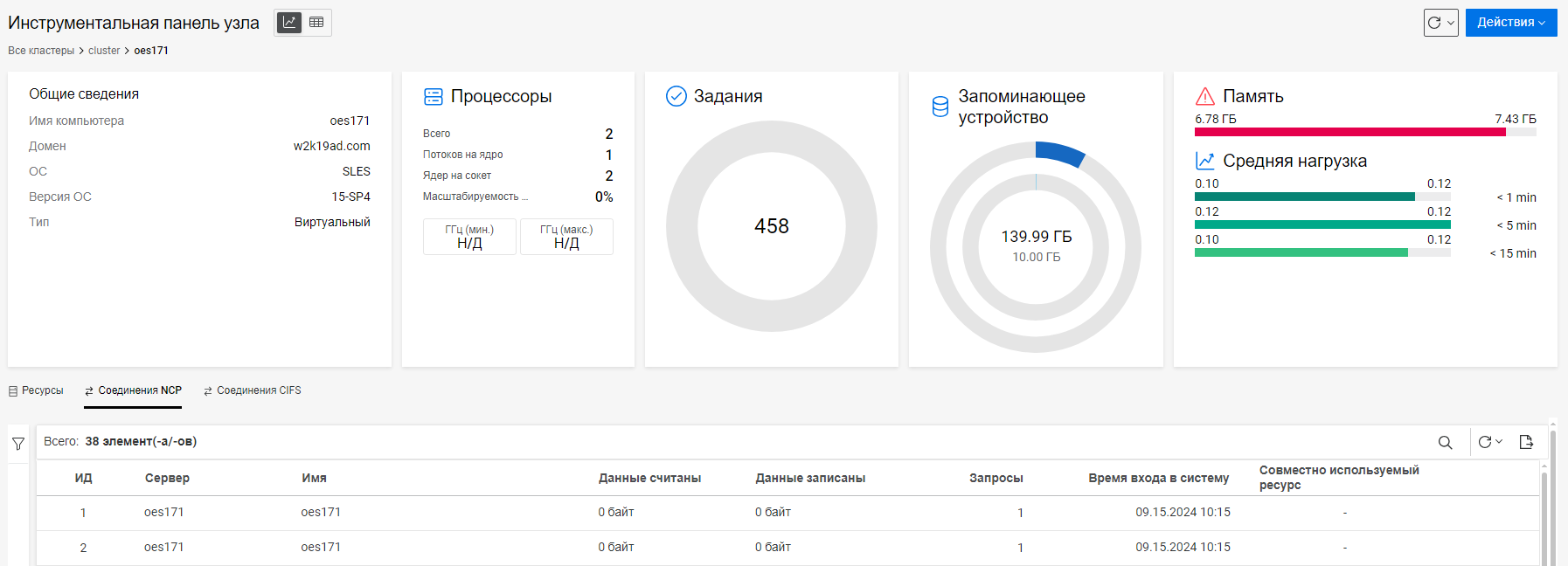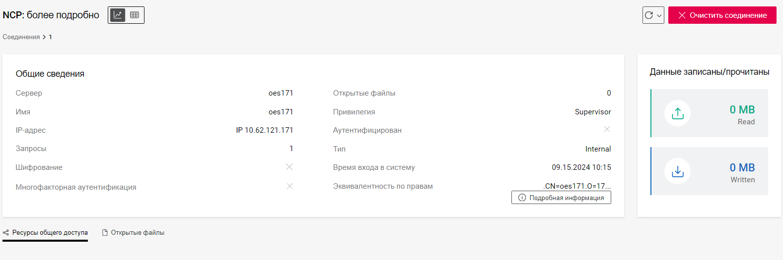 Табличное представление: выводит список соединений NCP и CIFS.