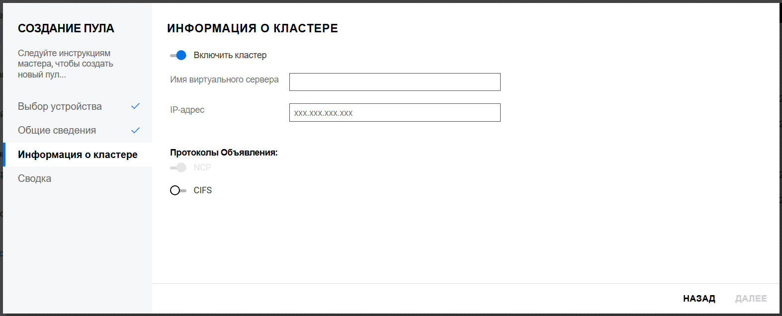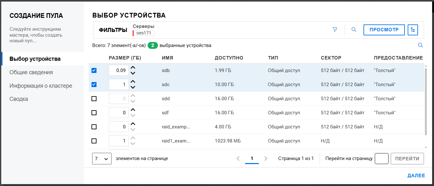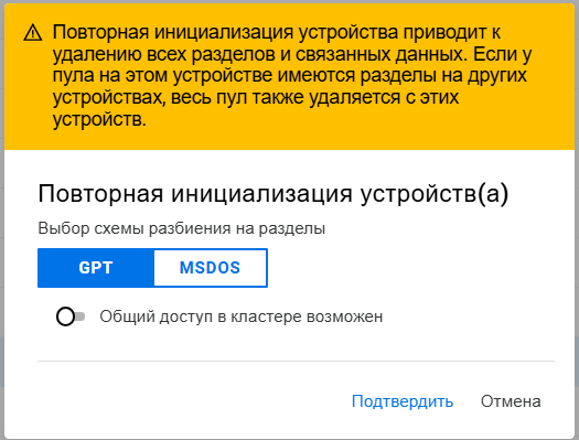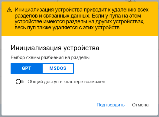 Создание пула на общем устройстве запрещено, если кластер не настроен.
