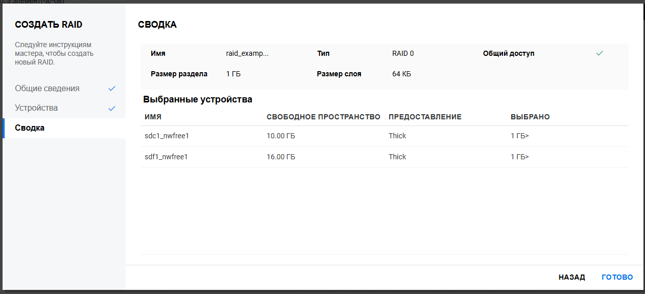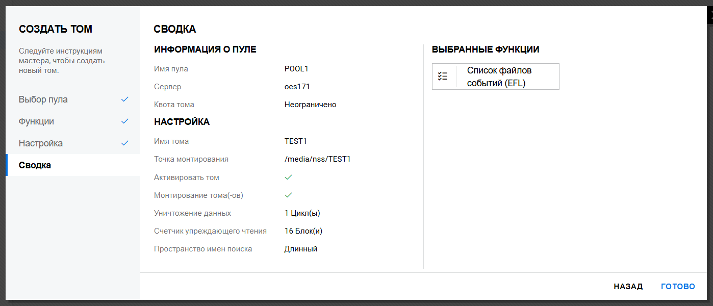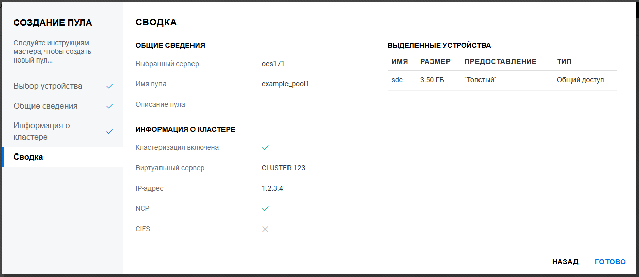 На странице Сводка проверьте контейнеры и серверы, а затем щелкните Готово.