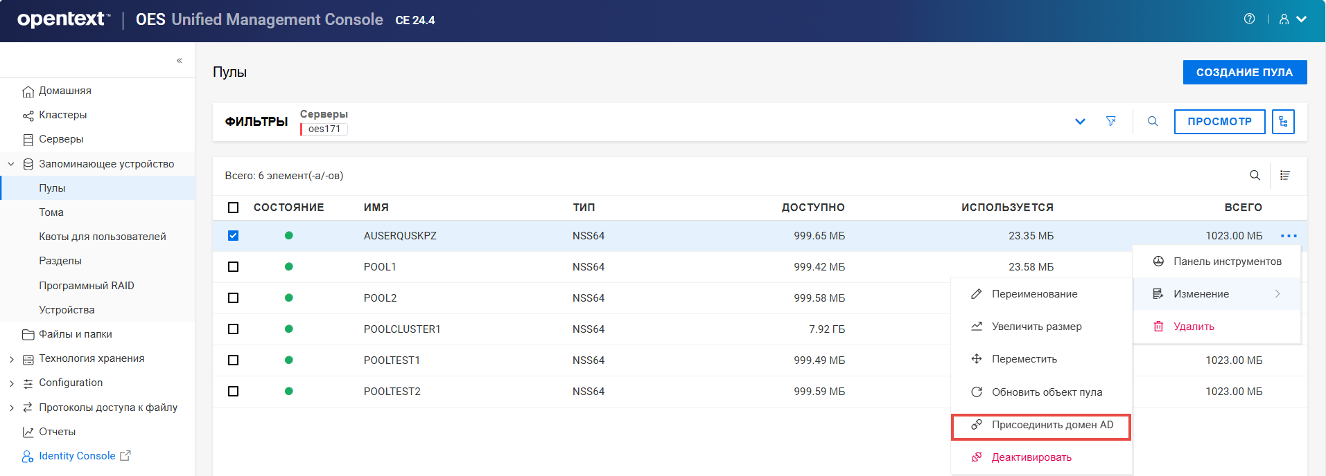 Если объект пула уже существует, присоединение пула к домену AD завершится ошибкой. Очистите объект в Active Directory и повторите попытку.