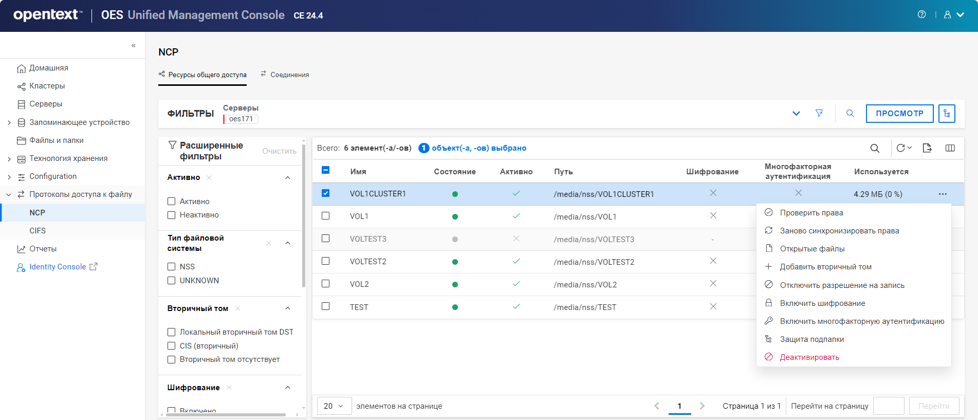 Общие папки или соединения NCP не отображаются, если какой-либо из выбранных виртуальных серверов недоступен, отключен или находится в коматозном состоянии.