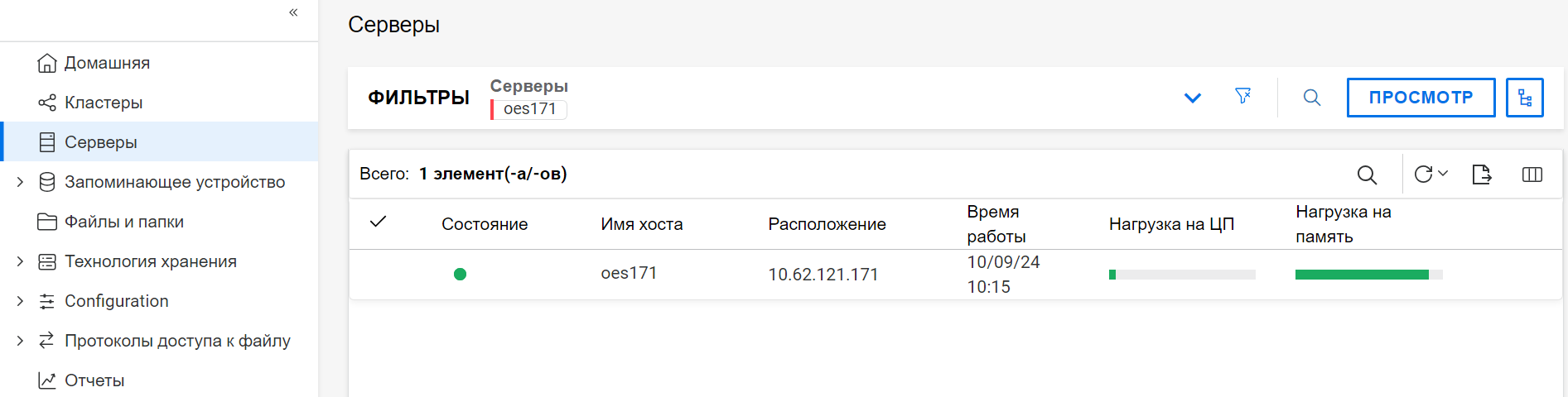 Для каждого объекта кластера отображается указанная ниже информация.