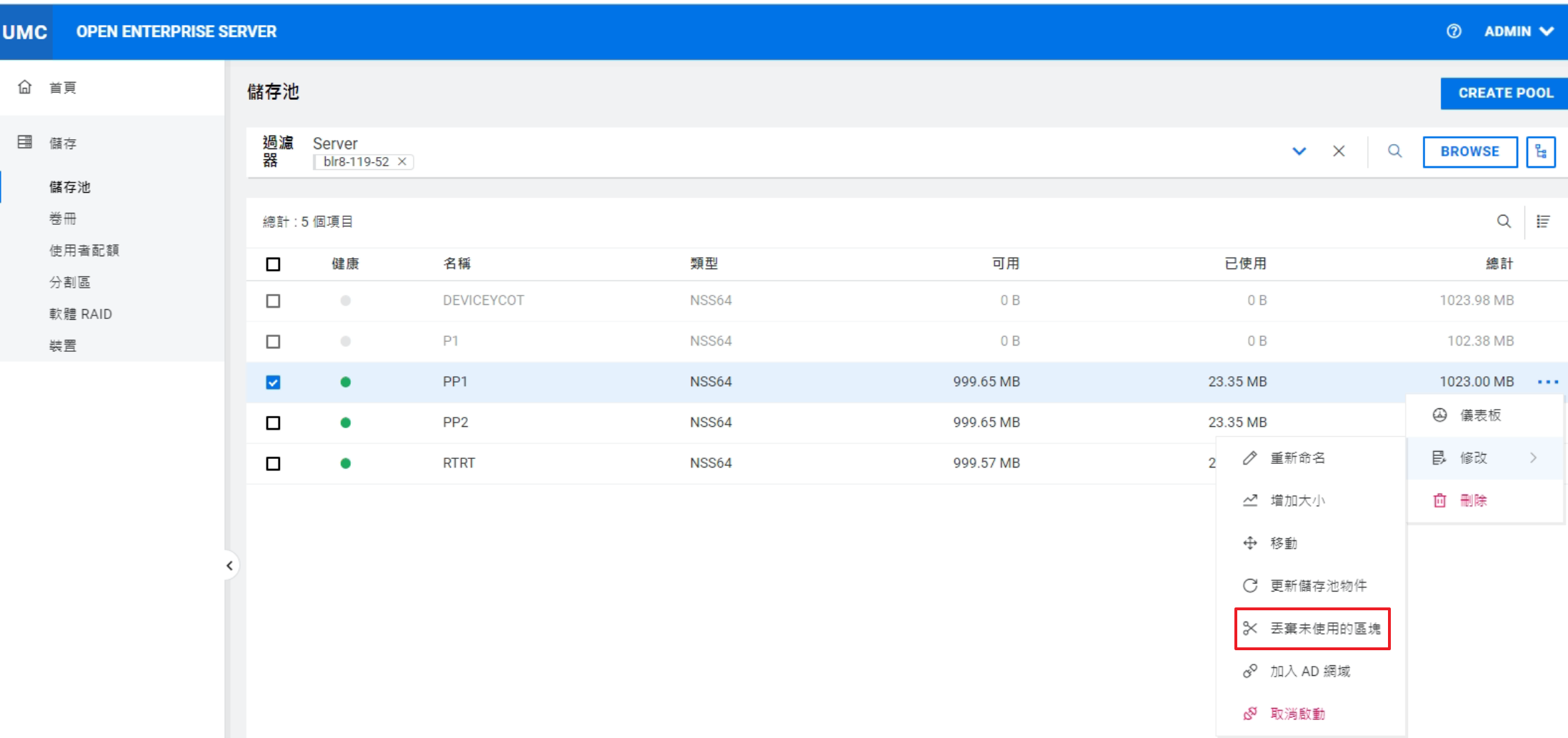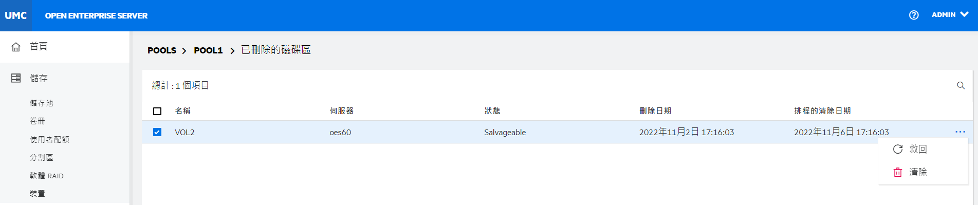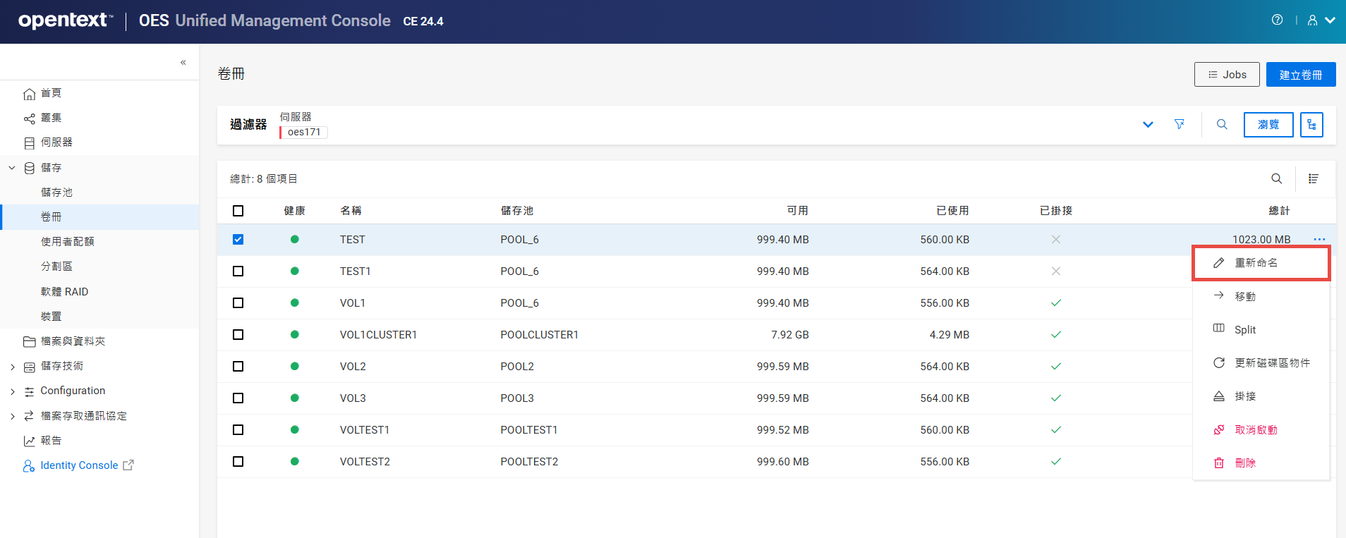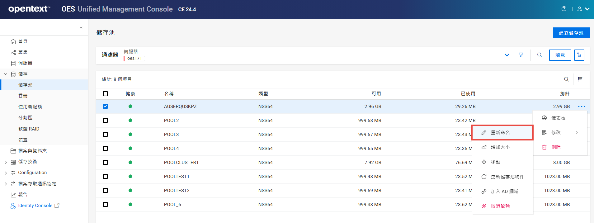 重新命名叢集儲存池或磁碟區可能會顯示不一致的行為。如果在重新命名後無法列出儲存池或磁碟區,請以無痕模式從另一個視窗開啟 UMC。