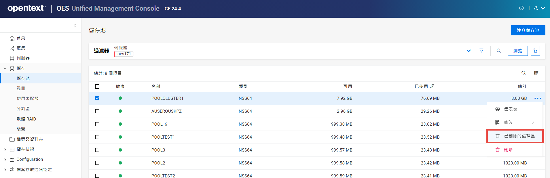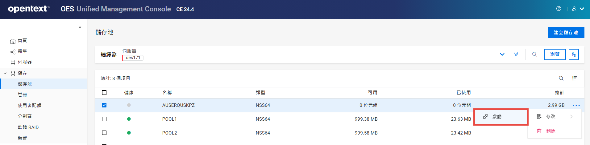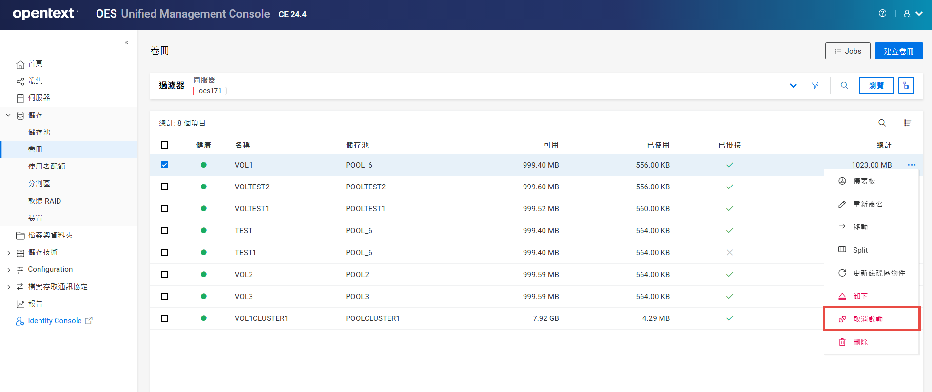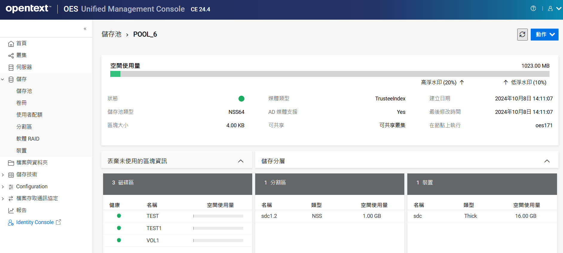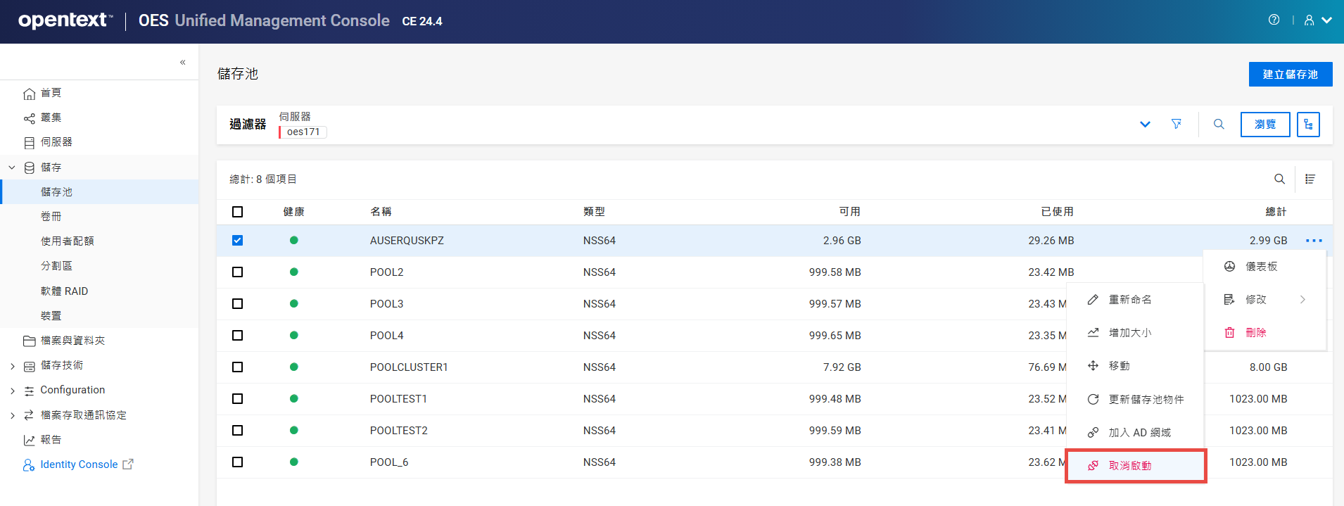 重新命名叢集儲存池或磁碟區可能會顯示不一致的行為。如果在重新命名後無法列出儲存池或磁碟區,請以無痕模式從另一個視窗開啟 UMC。