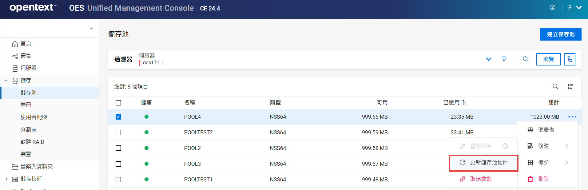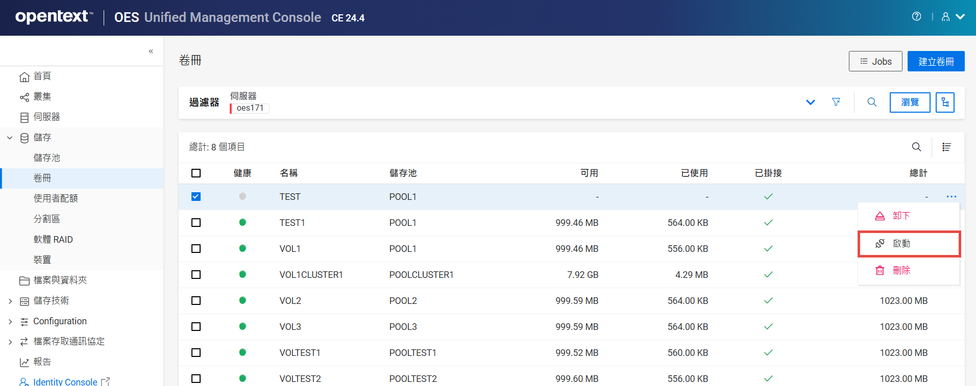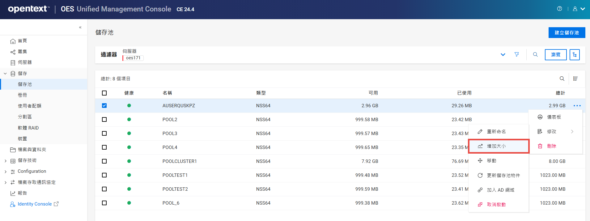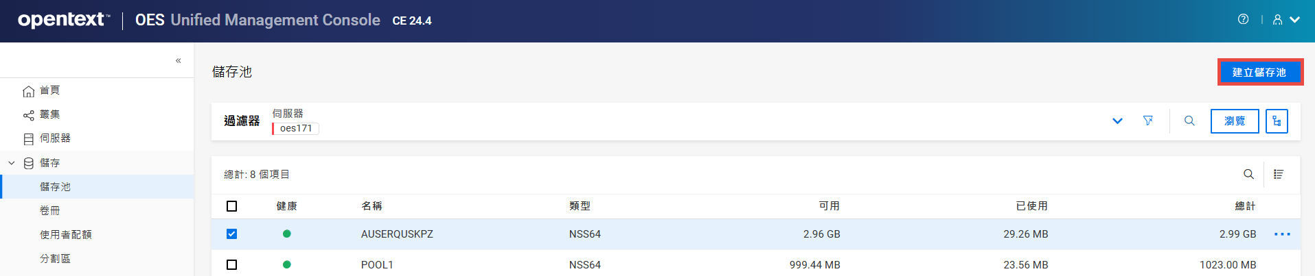 重新命名叢集儲存池或磁碟區可能會顯示不一致的行為。如果在重新命名後無法列出儲存池或磁碟區,請以無痕模式從另一個視窗開啟 UMC。