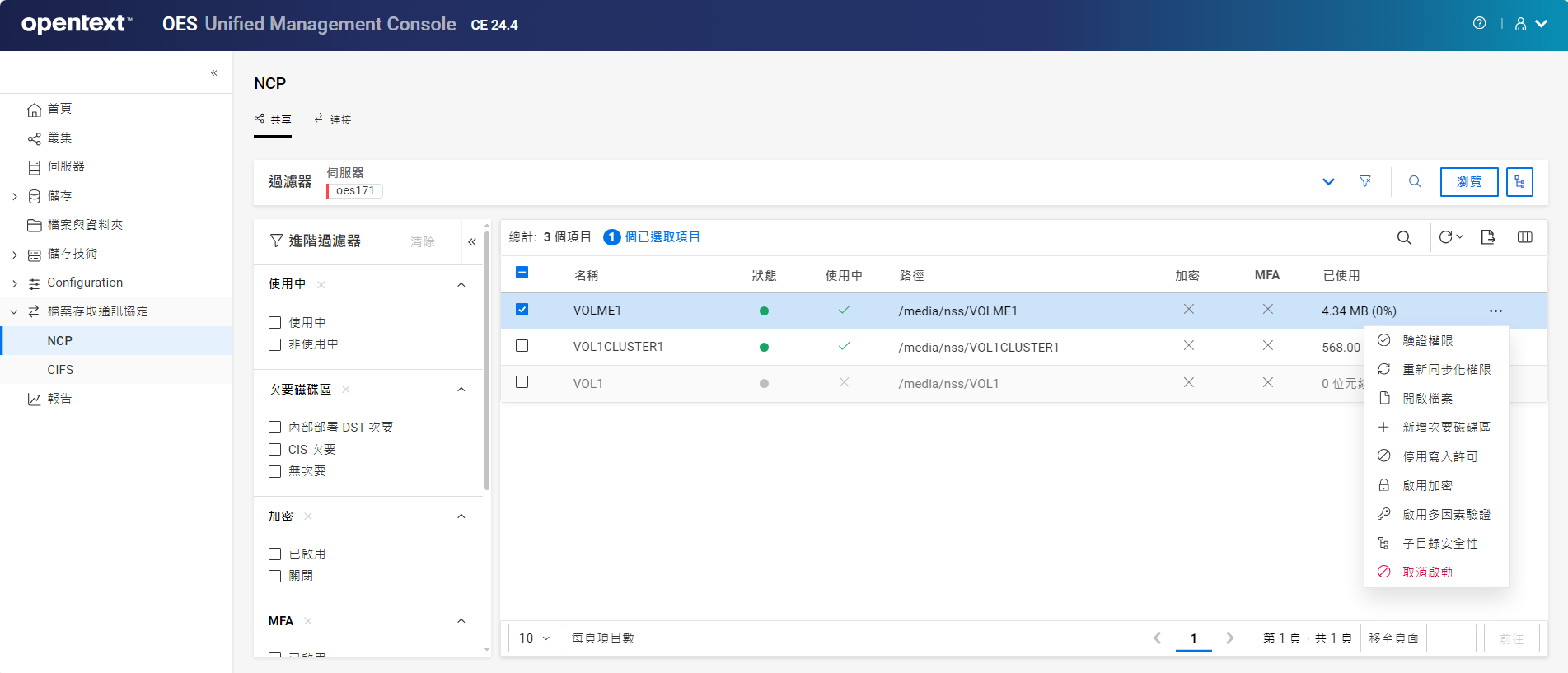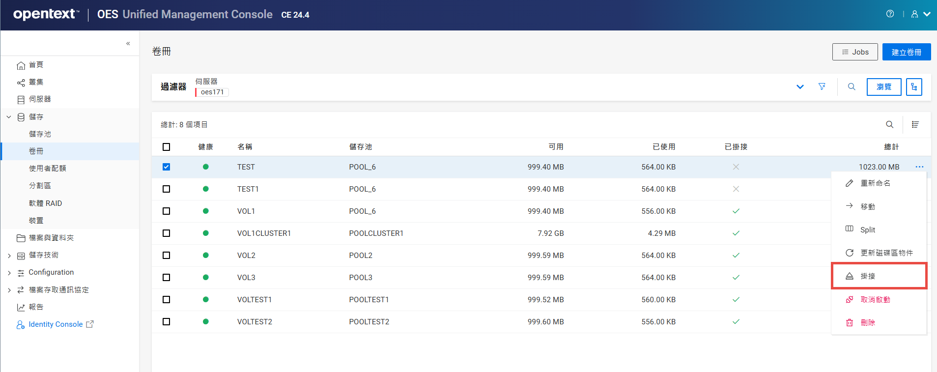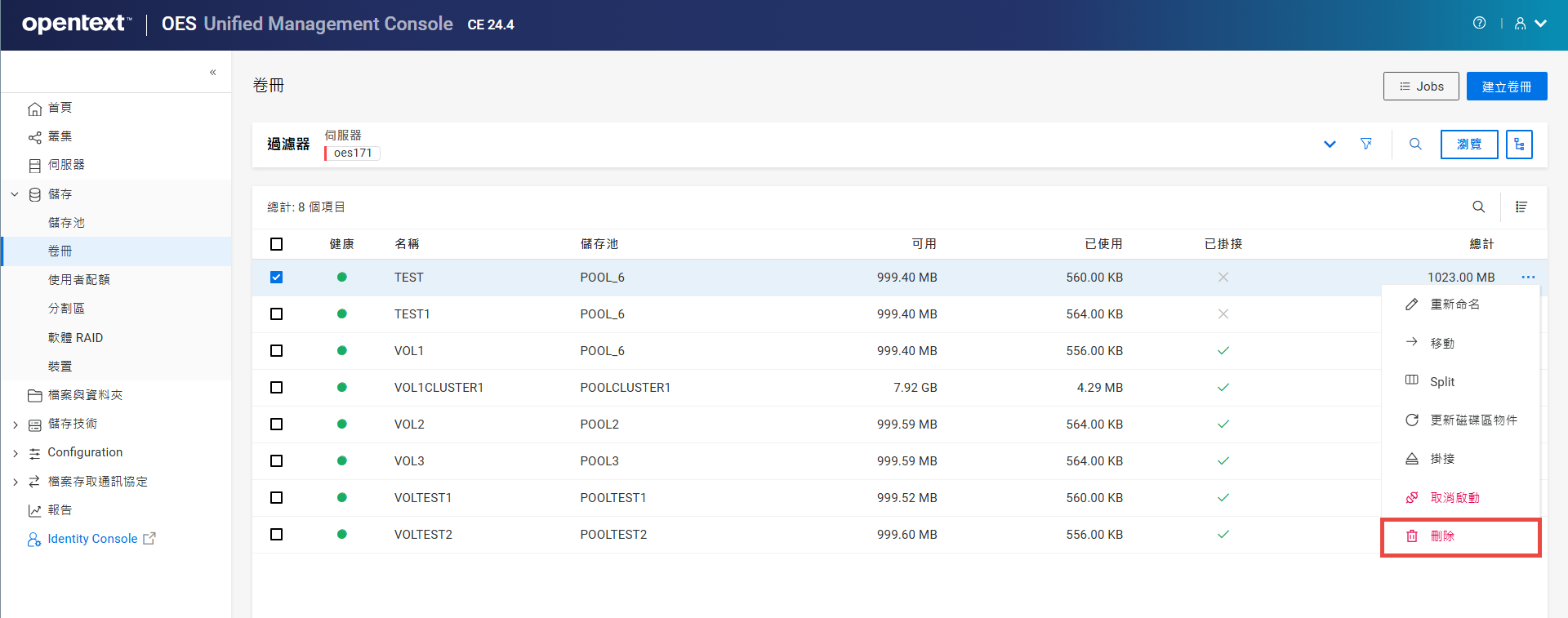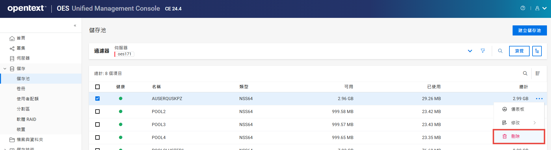 重新命名叢集儲存池或磁碟區可能會顯示不一致的行為。如果在重新命名後無法列出儲存池或磁碟區,請以無痕模式從另一個視窗開啟 UMC。