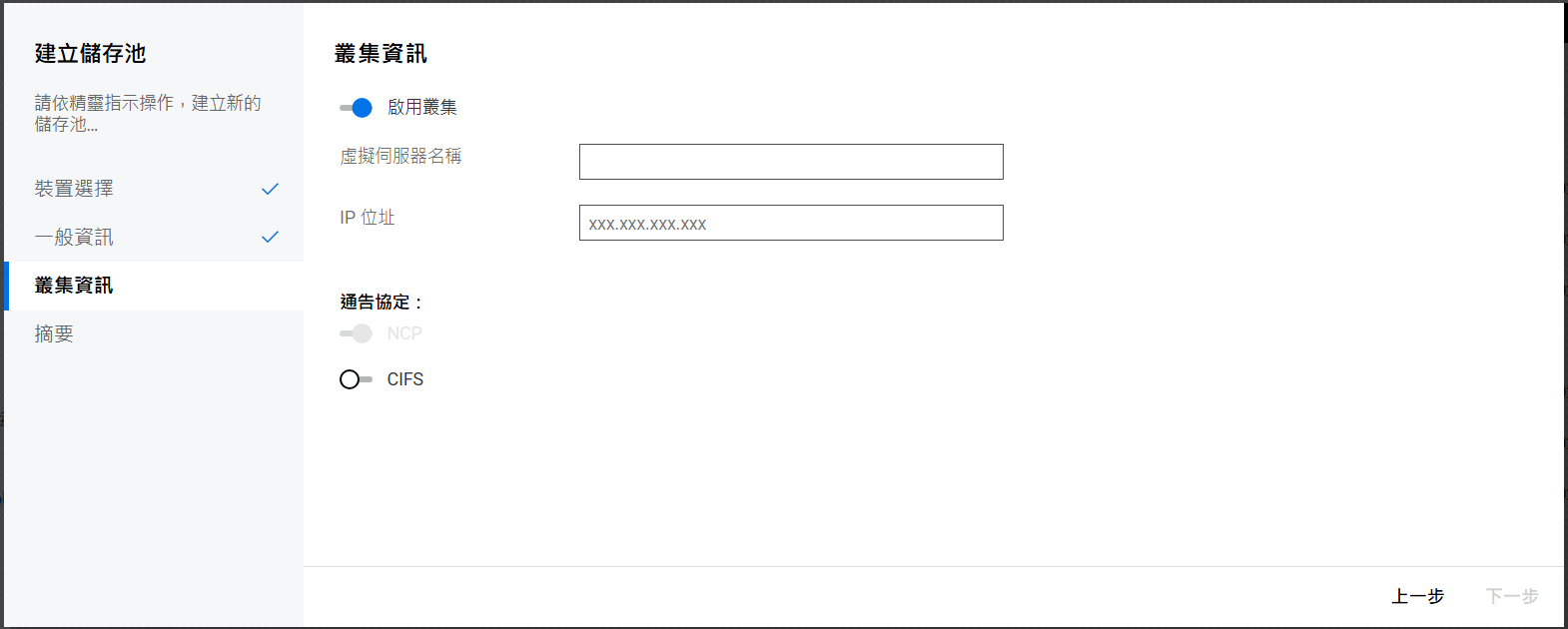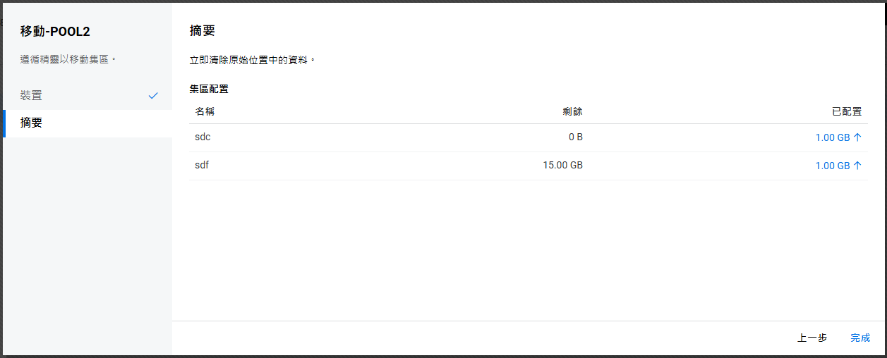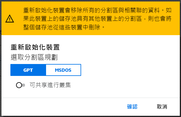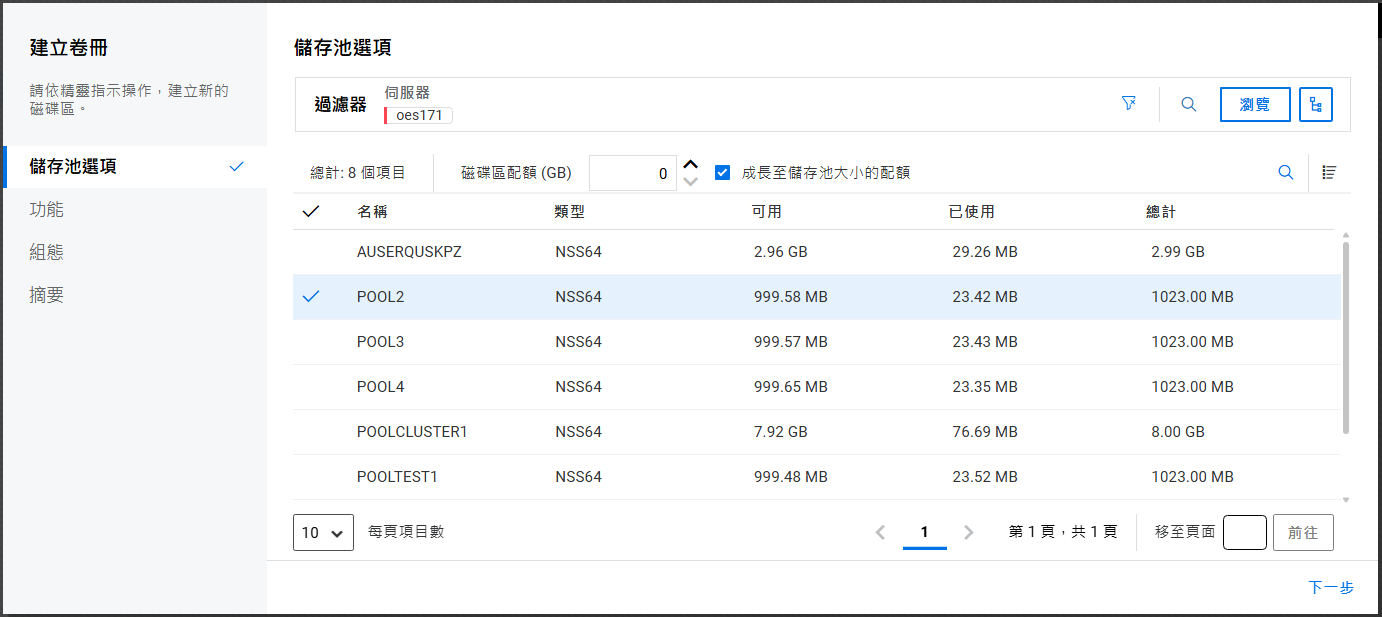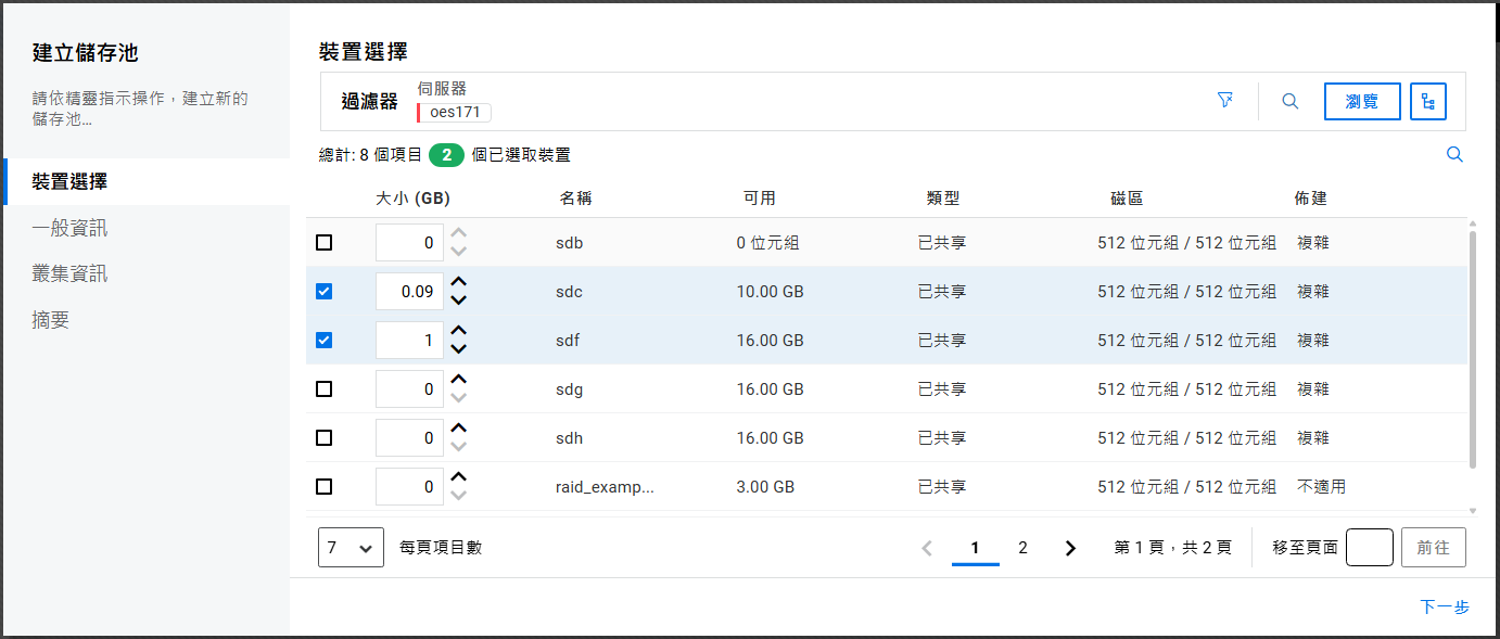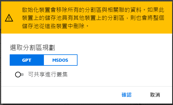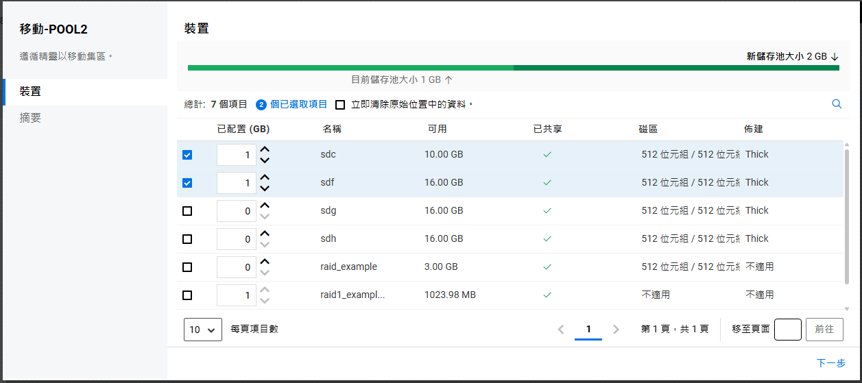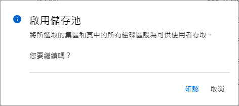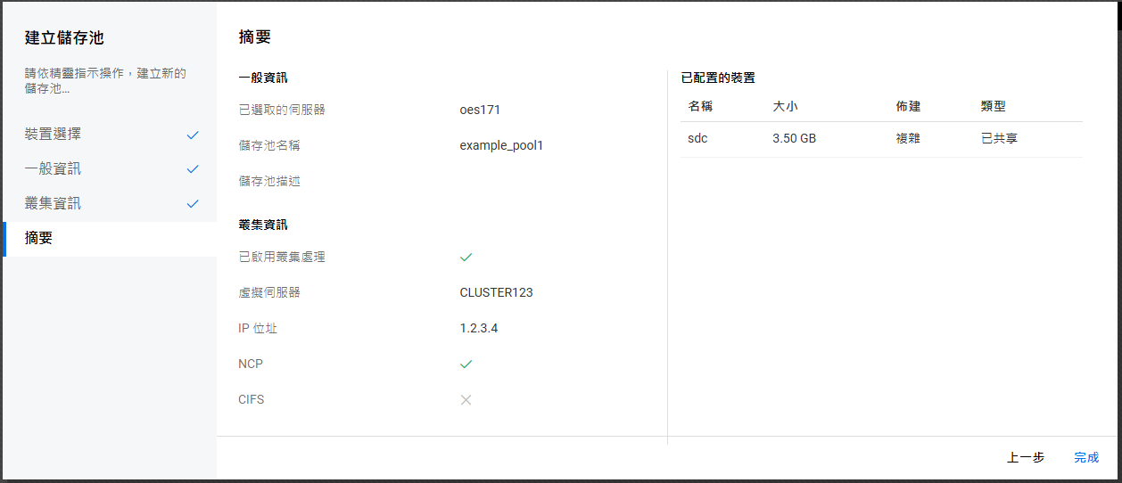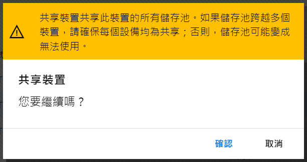 如果未設定叢集,則不允許在共享裝置上建立儲存池。