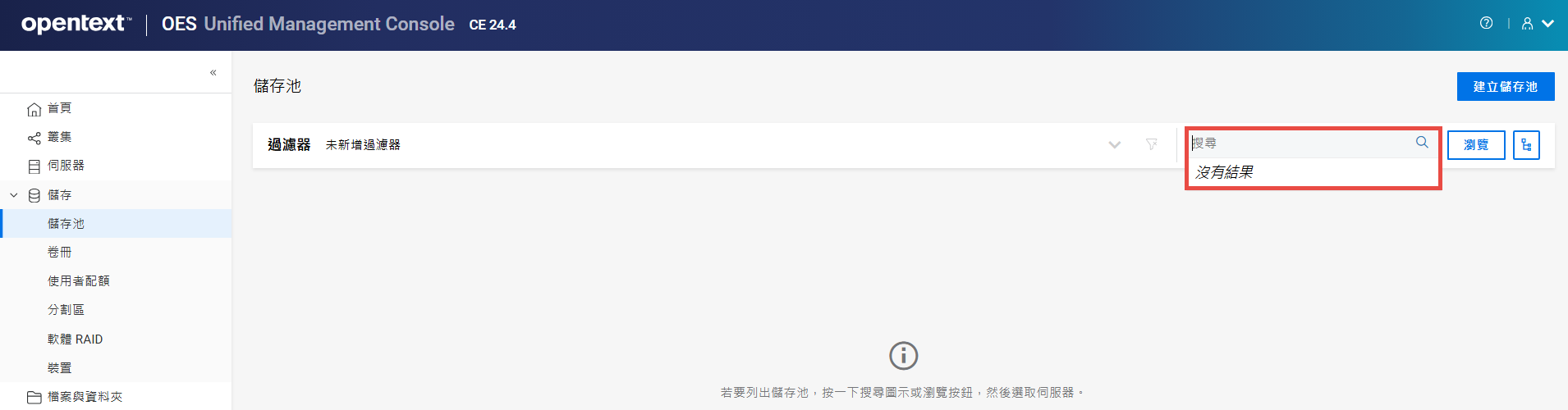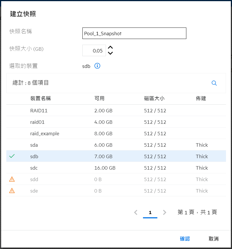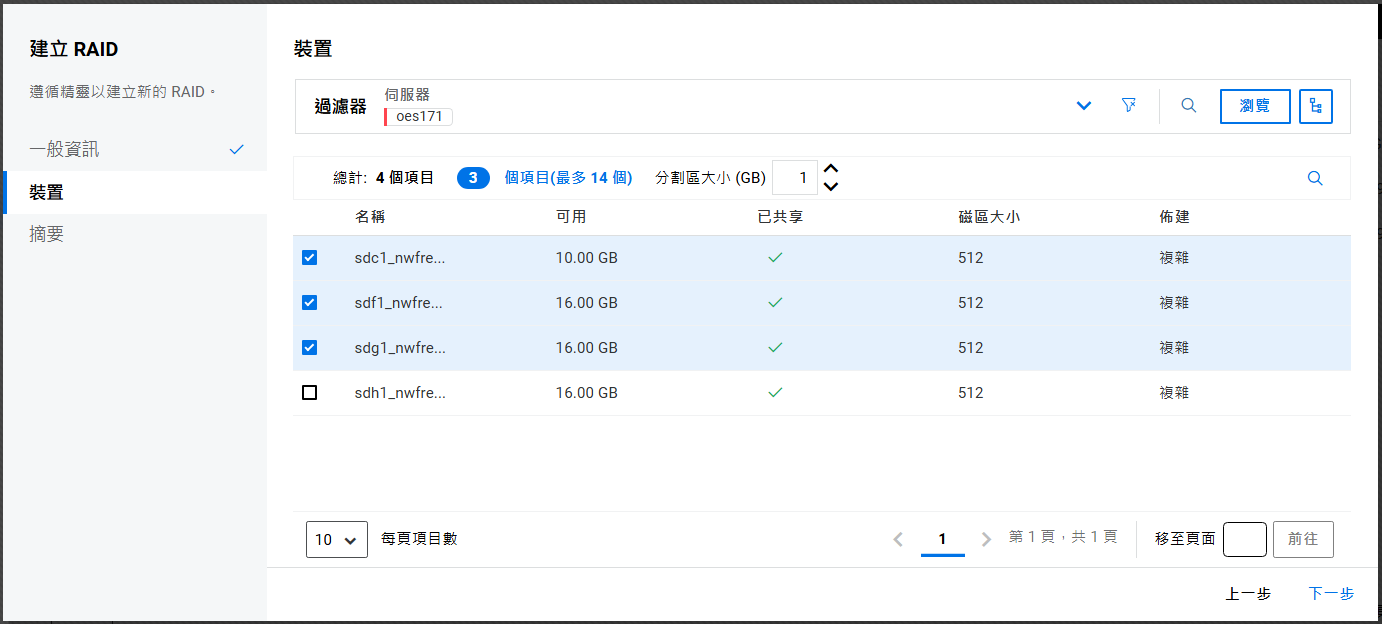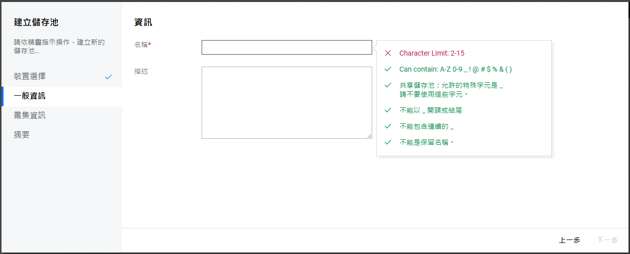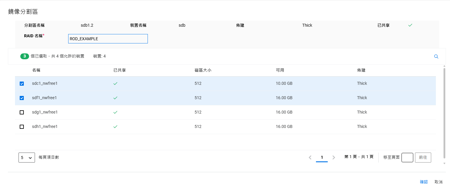 如果未設定叢集,則不允許在共享裝置上建立儲存池。