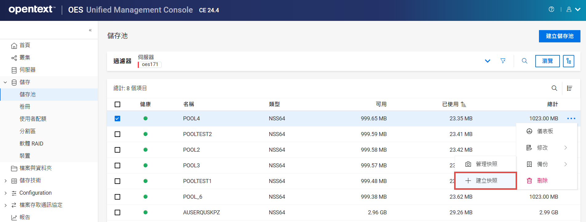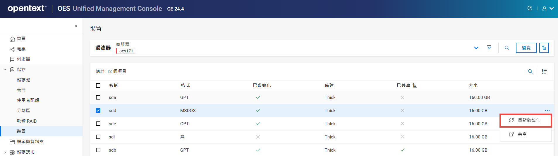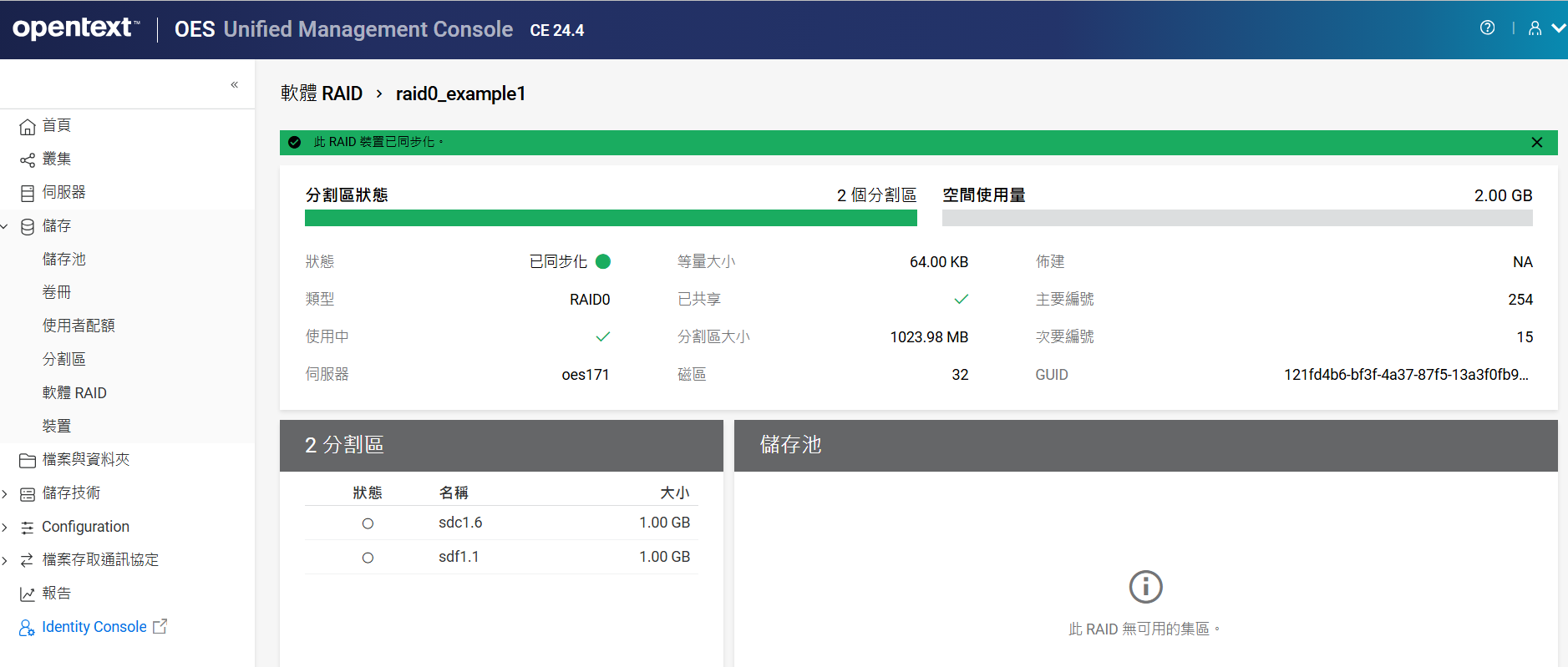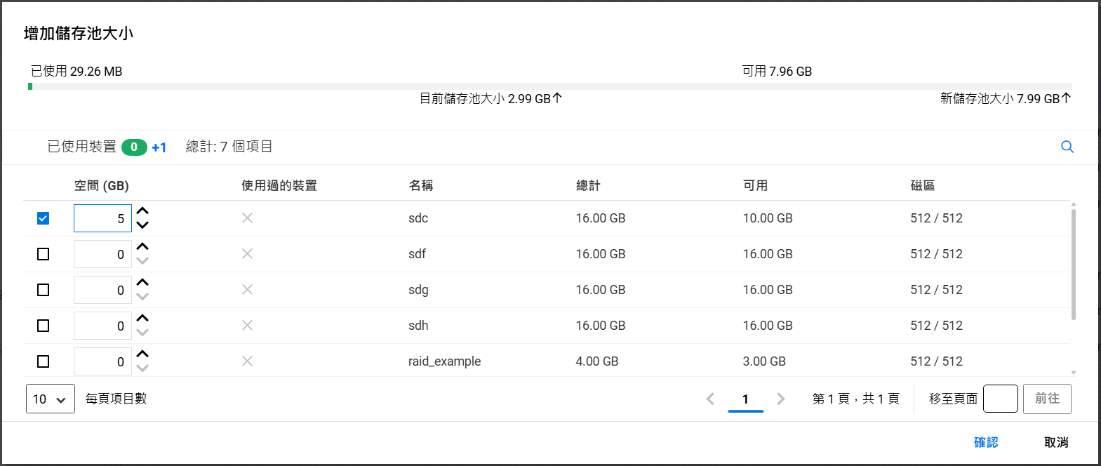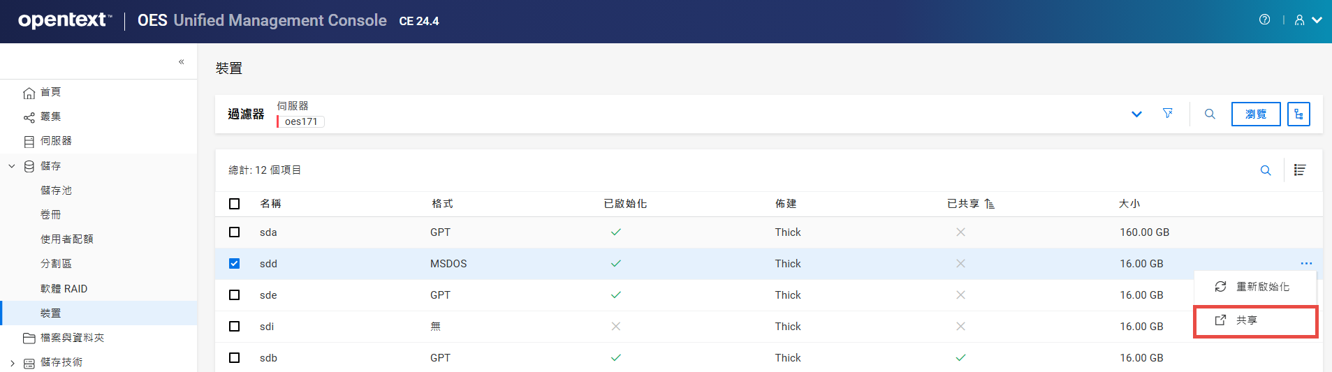 如果未設定叢集,則不允許在共享裝置上建立儲存池。