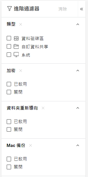 以新增其他欄,例如「類型」、「主 IP 位址」和「位置」。