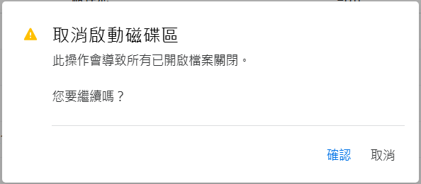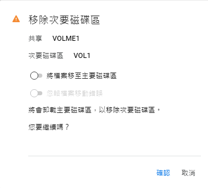 移除使用者網路位置會讓容器中的使用者受到限制而無法存取共用。