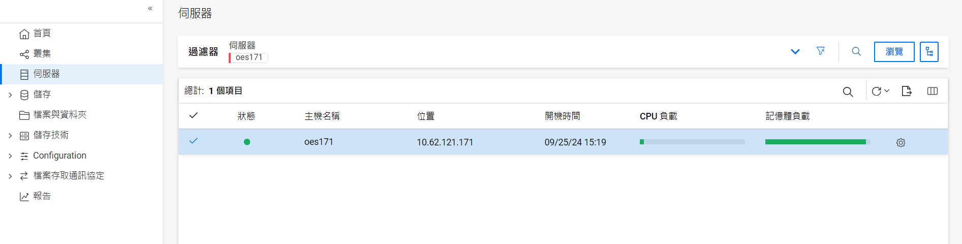 儀表板檢視窗: 伺服器統計資料的圖形表示。