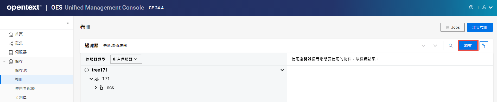 瀏覽並選取要檢視的叢集物件。