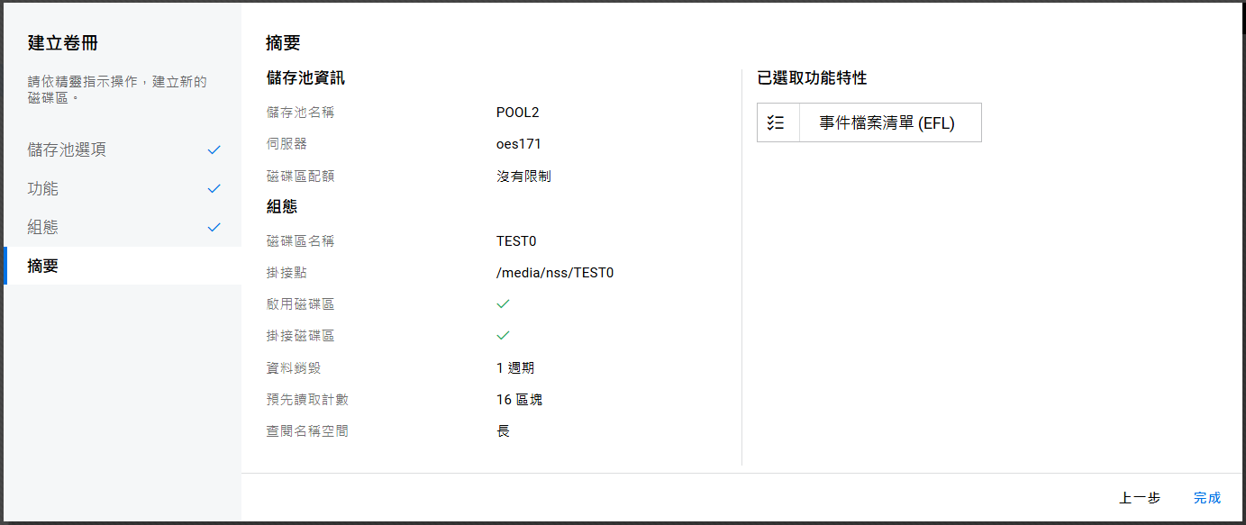 在建立磁碟區之前,請從 NSS 控制台執行 /PoolMediaUpgrade=pool_name /MediaType=AES。