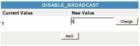 If the DISABLE_BROADCAST parameter is enabled (set to 1), click the link for the value in the Parameter Value column to open a page where you can change the value.