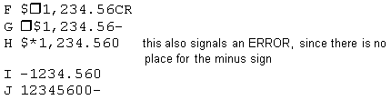 If the value -1234.56 was assigned to each of the variables in these examples, the resulting pictured values would be as follows: