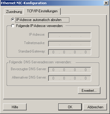 DHCP: Hiermit wird eine IP-Adresse abgerufen, die automatisch von einem DHCP-Server zugewiesen wird.