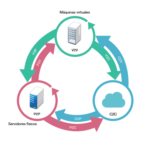 PlateSpin Migrate permite automatizar la migración de cargas de trabajo entre infraestructuras físicas, la máquina virtual, las imágenes de volúmenes y la nube. Las plataformas de nube compatibles son Amazon Web Services (AWS), Microsoft Azure, VMware vCloud Director y VMware Cloud en AWS.