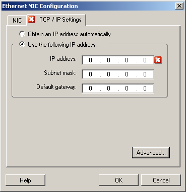 Connect using (Conectar mediante): si hay presentes varios adaptadores de red, seleccione el que pueda comunicarse tanto con el servidor de PlateSpin como con el destino. Duplex setting (Configuración dúplex): use la lista desplegable para seleccionar la transmisión dúplex de la tarjeta de red. Debe coincidir con el valor de transmisión dúplex del conmutador al que está conectada la interfaz de red. Si el origen está conectado a puertos del conmutador definidos para transmisión dúplex de 100 megabits y no se puede cambiar a la negociación automática, seleccione Force NIC to Full Duplex (Forzar NIC a transmisión dúplex). Pestaña TCP/IP Settings (Configuración de TCP/IP): haga clic en la pestaña para acceder a los valores de TCP/IP y a la configuración avanzada de la red. Consulte Configuración de TCP/IP y de red avanzada. |