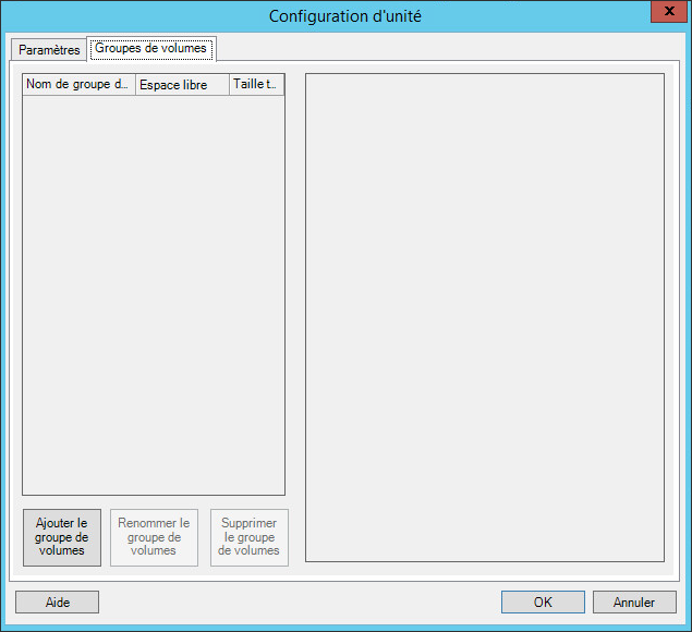 Utilisez ces paramètres pour gérer des groupes de volumes.