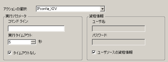 実行パラメータ: アクション用に必要なコマンドラインパラメータがあれば指定します。必要に応じて、タイムアウトを指定します。