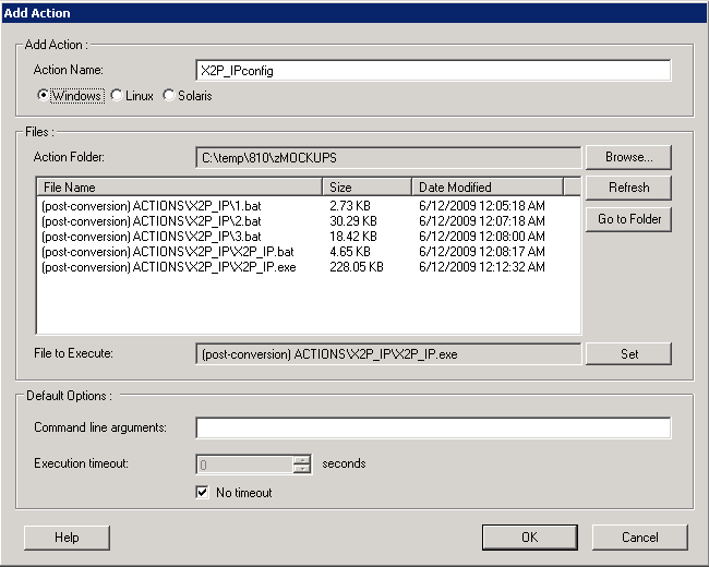 You configure the action in a batch file, a shell script, or a program executable, then upload them to the PlateSpin Server library of custom actions. You can then associate them with migration jobs you configure in the PlateSpin Migrate Client. At the end of the migration process, PlateSpin Migrate uploads the specified action, along with its dependencies, to the target and executes it.