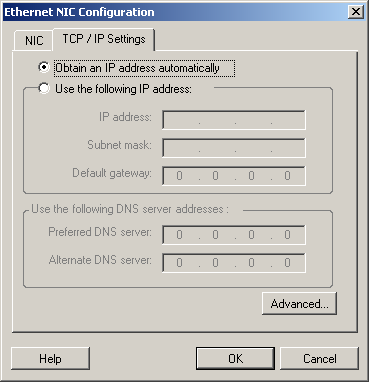 Connect using: If multiple network adapters are present, select the adapter that can communicate with both the PlateSpin Server and the target. Duplex setting: Use the drop-down list to select network card duplexing. It must match the duplex setting for the switch to which the network interface is connected. When the source is connected to switch ports that are set to 100 Mbit full duplex and cannot be changed to auto negotiation, select Force NIC to Full Duplex. TCP/IP Settings tab: Click the tab to access TCP/IP and advanced network settings. See TCP/IP and Advanced Network Settings. |