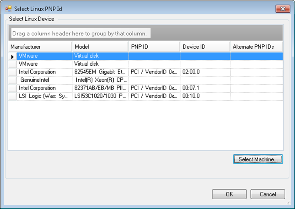 Highlight one of the devices in the list, then click Select to populate the list in the Select Linux PnP ID dialog box.
