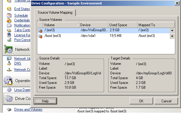 2. In the Drive Configuration section of the Migration Job window, click the Volume Mapping or Drives and Volumes option displayed depending on the target type.