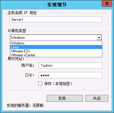 要对多个计算机执行发现操作,请指定多个主机名或 IP 地址,并用分号分隔它们。如果目标位于 NAT 设备后,请指定其公用(外部)IP 地址。