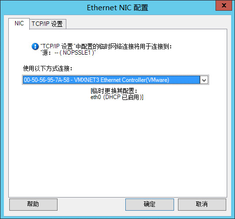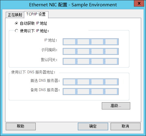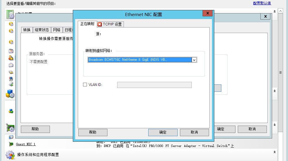 包括在转换中:如果选中此选项,PlateSpin Migrate 会为源 NIC 创建虚拟 NIC。 映射到虚拟网络:选择目标虚拟机上将使用的虚拟网络。请选择允许目标 VM 与服务器通讯的虚拟网络。 启动时连接:启用此选项可在启动 ESX 目标计算机时连接虚拟网络接口。 VLAN ID:(仅适用于 Hyper-V 服务器上的目标计算机)启用此选项可指定目标计算机上要使用的虚拟网络 ID。如果不指定此 ID,默认会使用源计算机的虚拟网络 ID。 TCP/IP 设置选项卡:单击此选项卡可访问 TCP/IP 及高级网络设置。请参见TCP/IP 及高级网络设置。 |
