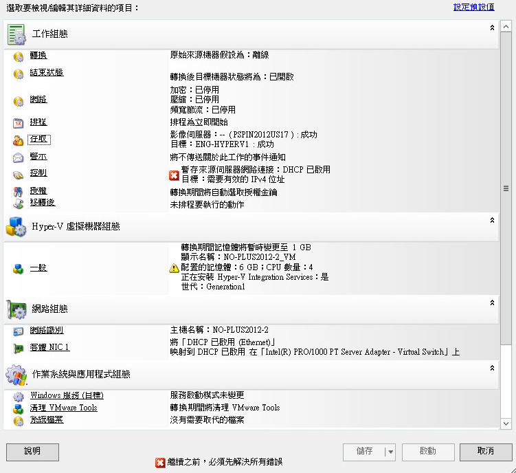 移轉工作會自動設定為使用與來源伺服器相同的設定來建立目標機器。根據移轉的目的,您可以: