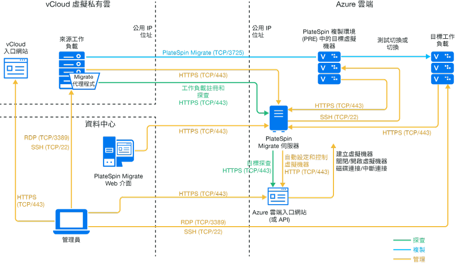 PlateSpin Migrate 支援將工作負載從 VMware vCloud Director 移轉至 Microsoft Azure。