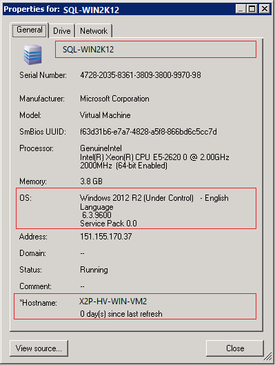 Figure 3-2 provides an example of X2P host names for target workloads with and without an operating system present. Workloads X2P-HV-LX-VM3 and X2P-HV-WIN-VM1 do not have an underlying operating system. The LRD information is displayed as the operating system.
