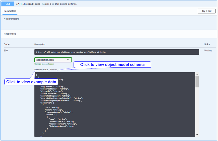 For example, Figure 2-6 shows the documentation for request to get information about a specified platform.