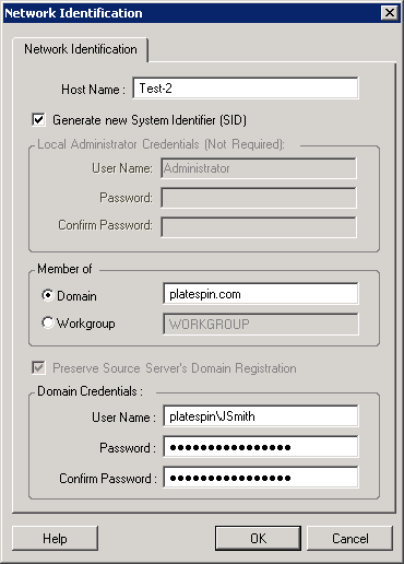 PlateSpin Migrate enables you to manage the network identity and domain registration of your migration target workload and specify related preferences as part of a migration job. By default, a job is configured to preserve a source workload’s network identity and domain registration. You can modify the default configuration to suit the objectives of your migration job.