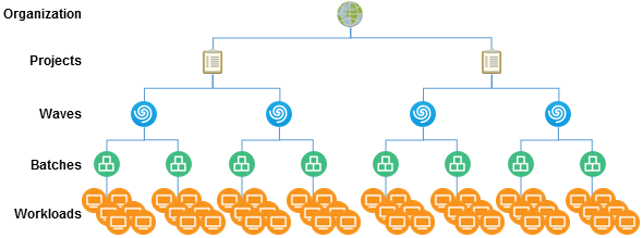 Within a wave, batches group like workloads that you want to transform together. Batches can be more easily scheduled during intervals when Network resources are available. You can deliver valuable results in each batch and wave. Schedules are flexible. You can coordinate the start dates and cutover dates with stakeholders to work around planned events that are critical to the business.