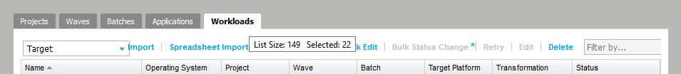 Pause over the tab title to view an infotip with the total number of items in the list and the total number of selected items currently selected in the list.