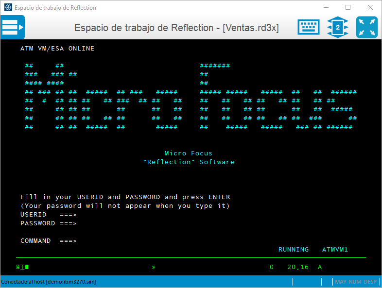 El modo Clásico es similar a la familiar interfaz que espera de las aplicaciones anteriores de Windows , con los tradicionales menús y barras de herramientas. Las "máscaras" de Extra! y Reflection se incluyen. En el modo Clásico, cada documento de sesión se abre en una ventana independiente. El modo MDI clásica es parecido al modo Clásico, con la diferencia de que los documentos de sesión se abren en la misma ventana.