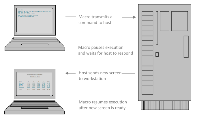 When your macro interacts with a mainframe program, you'll need to handle the asynchronous behavior that occurs between your macro and the host program.