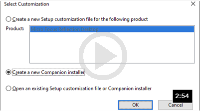 Create a companion installer package (also called a "companion database") to install any custom files you created when you customized Reflection. A companion installer package is a standalone MSI file that is independent of any Reflection installer package.