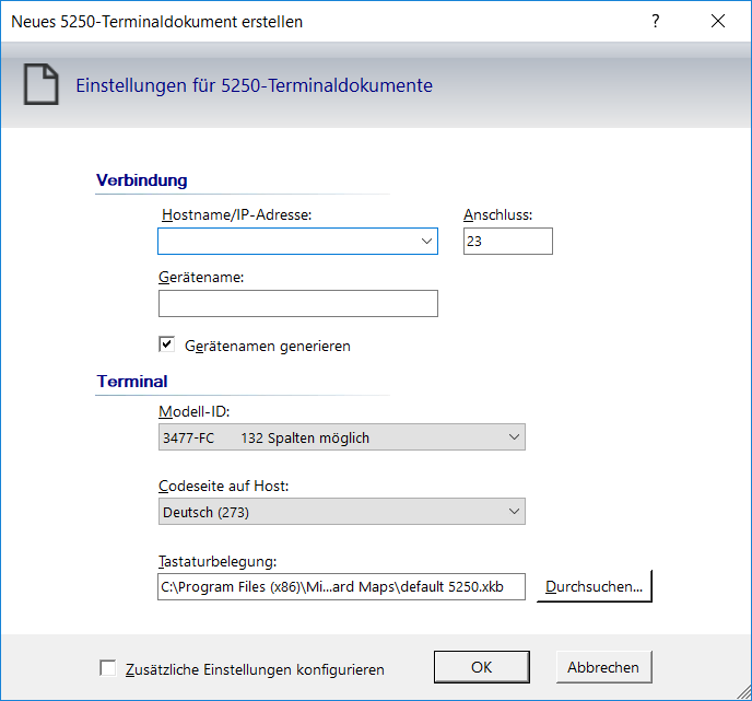 Dialogfeld „Neues 5250-Terminaldokument erstellen“