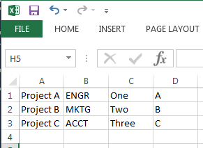 - When the Excel workbook opens, enter a few rows of data in the first four columns of the worksheet.