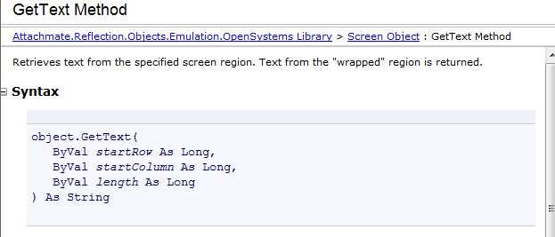 Let's take a look at how to use the syntax displayed in the Help for the GetText method.