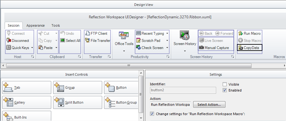 1. Open a session in the Reflection workspace and then, on the Appearance tab, select UI Designer.