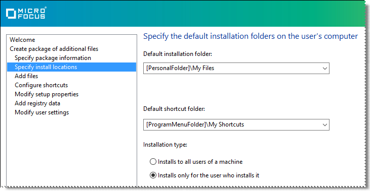 On the left pane, click Add files and then click in the Add files to box and type the rest of the path. If you previously selected Installs only for the user who installs it, The final entry should be: