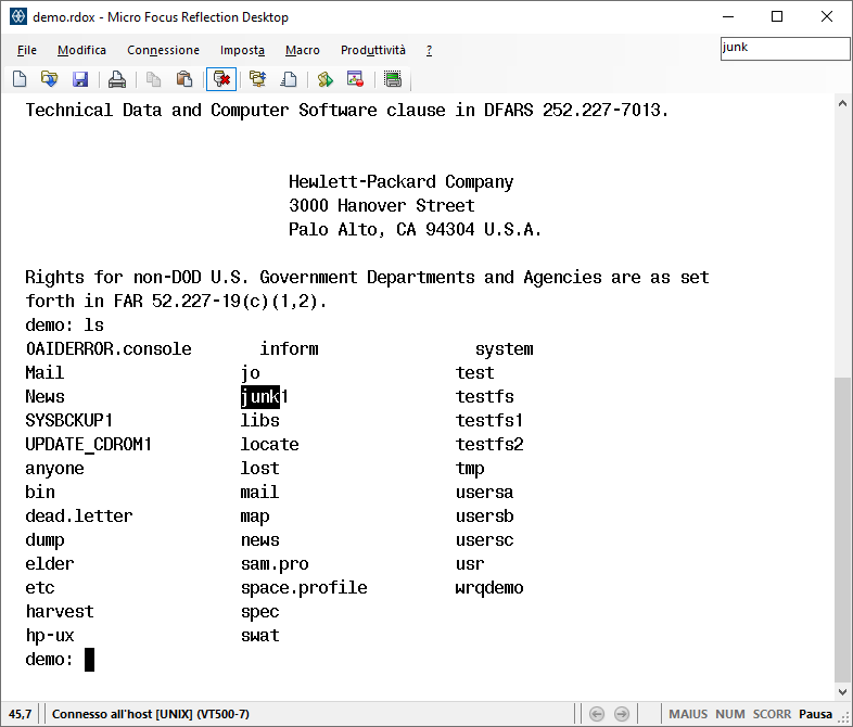Per i terminali IBM, il termine della ricerca viene evidenziato come illustrato.