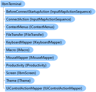 IIbmTerminal InterfaceInputMapActionSequence ClassInputMapActionSequence ClassIContextMenus InterfaceIFileTransfer InterfaceIKeyboardMapper InterfaceIMacro InterfaceIMouseMapper InterfaceIProductivity InterfaceIIbmScreen InterfaceITheme InterfaceIUiControlActionMapper Interface
