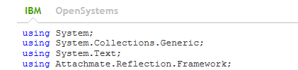 When you view samples and other tabbed content, make sure the tab for the terminal type you are using is selected. For example, the IBM tab is selected below.